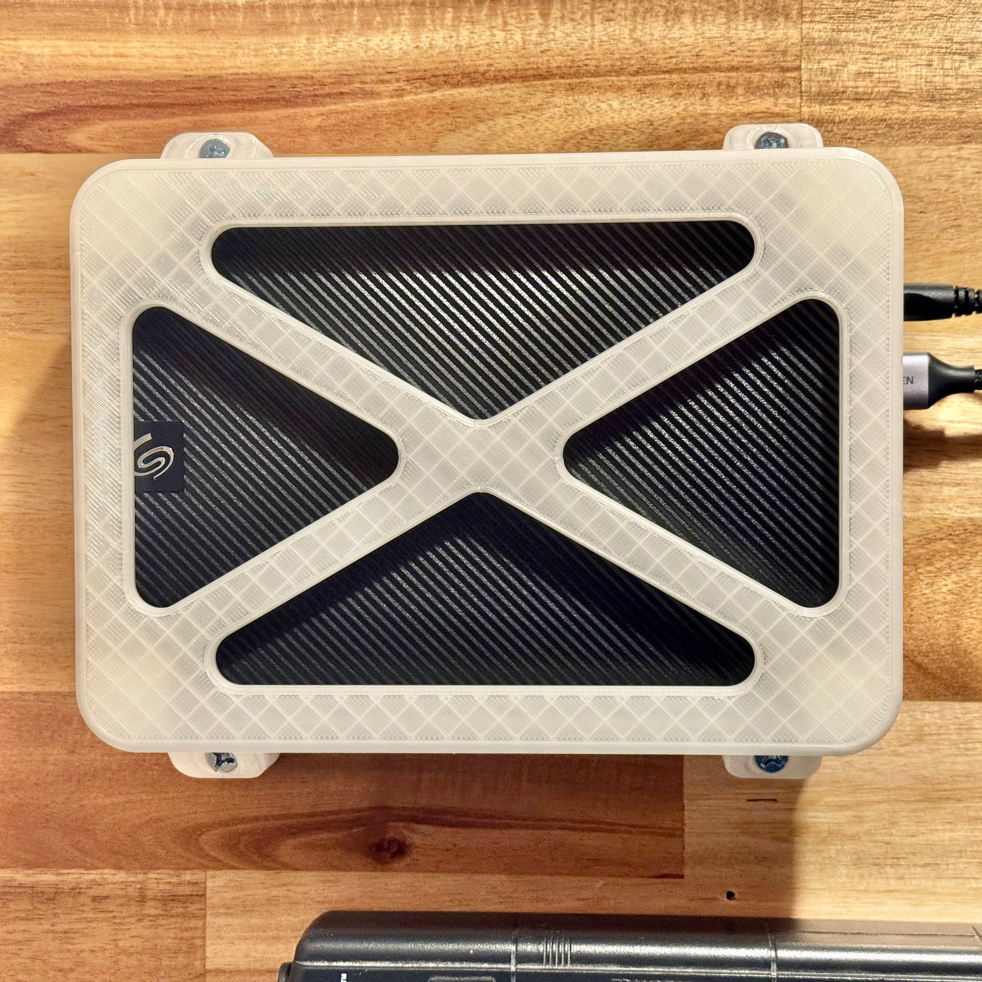 The dimension of the Seagate hard drive this is designed for is 7” x 5” x 1-5/8”. I can modify the design to accommodate other size hard drives upon request.